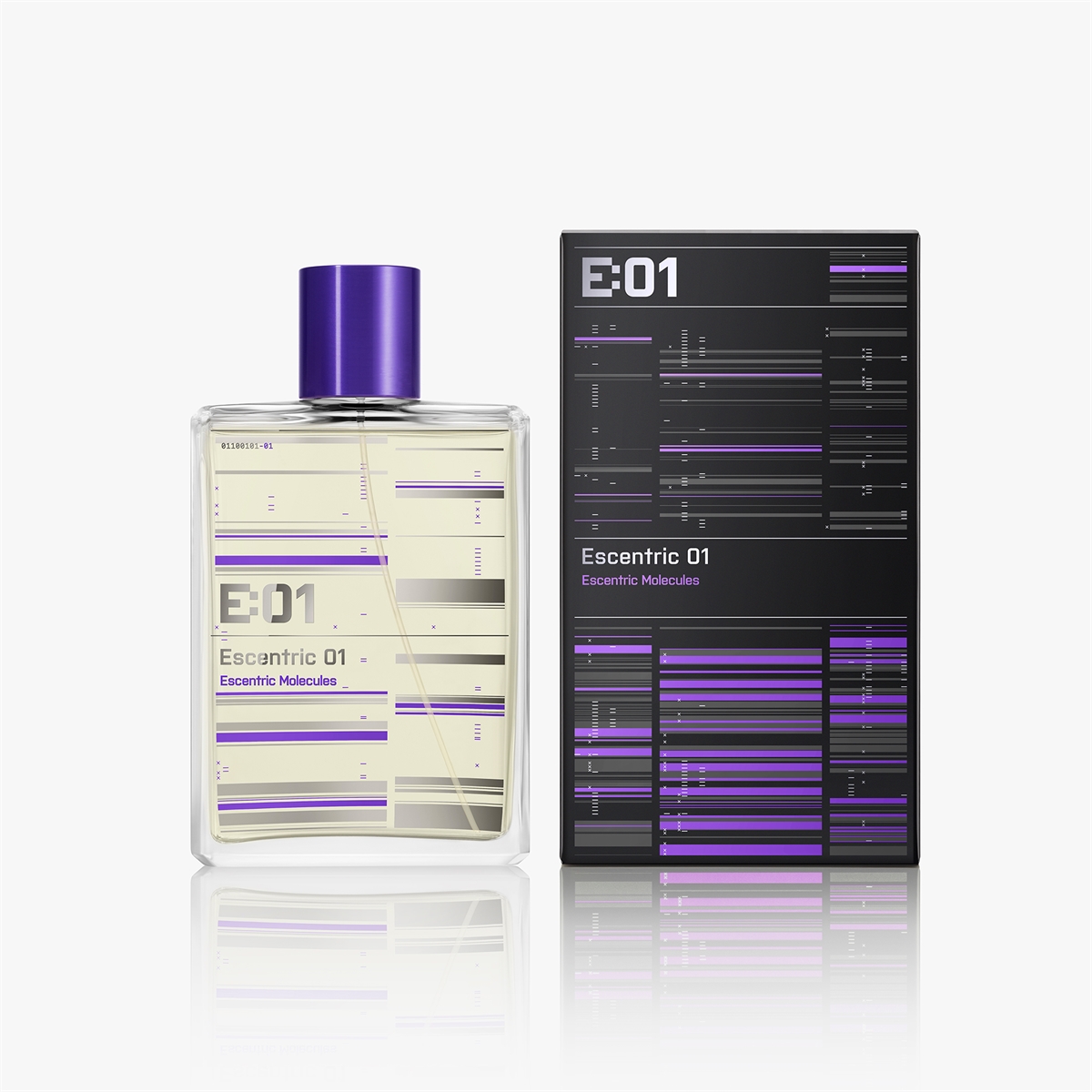 Escentric 01 fokuserer på Iso E Super med 65% af duftforbindelsen i en forkortet formel designet til at maksimere molekylets blomstring. Den indeholder lime skal, hedione (grøn jasmin knop), iris, balsamiske noter og frisk moskus.
