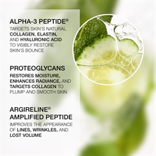 Den består af en blanding af udglattende og oppustende peptider, inklusiv Argireline Amplified Peptid og vores eksklusive AI-genererede Alpha-3 Peptid, designet til at målrette kollagen for et mere ungdommeligt udseende. Brug som dag og eller natcreme for at forbedre synligheden af smilerynker, panderynker, marionetlinjer, hudens hydrering, hudens elasticitet, volumen og fylde.