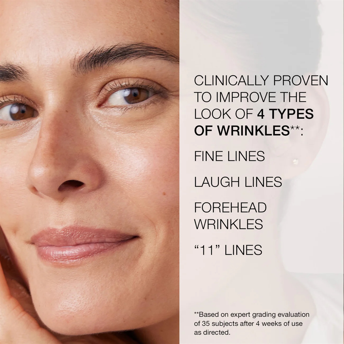 • 4 UGER til at forbedre udseendet af 4 typer rynker: fine linjer, smilelinjer, bekymringslinjer og panderynker